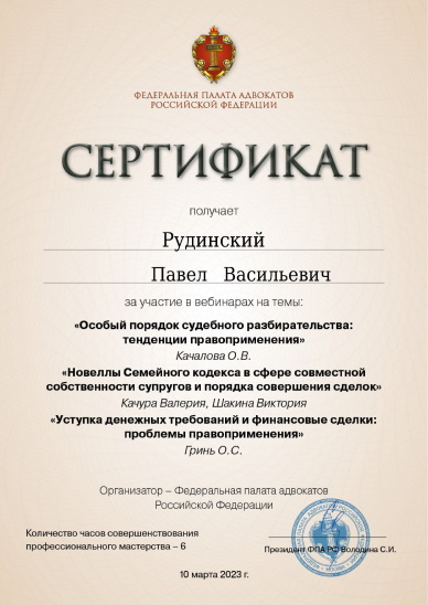 Павел Васильевич отличный и профессиональный адвокат, которого приятно слушать и с которым приятно работать. Всегда на связи и всегда спокоен.